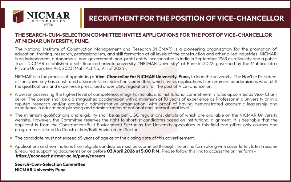For any query, clarification, or details, you may write to us at searchcommittee@nicmar.ac.in